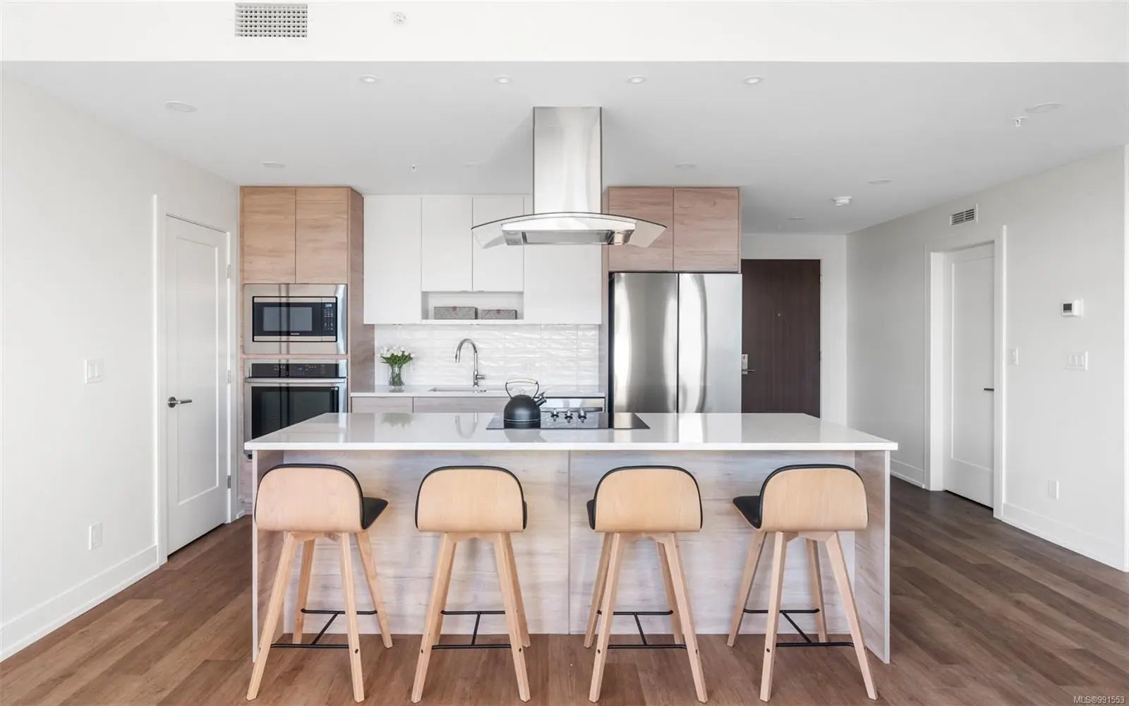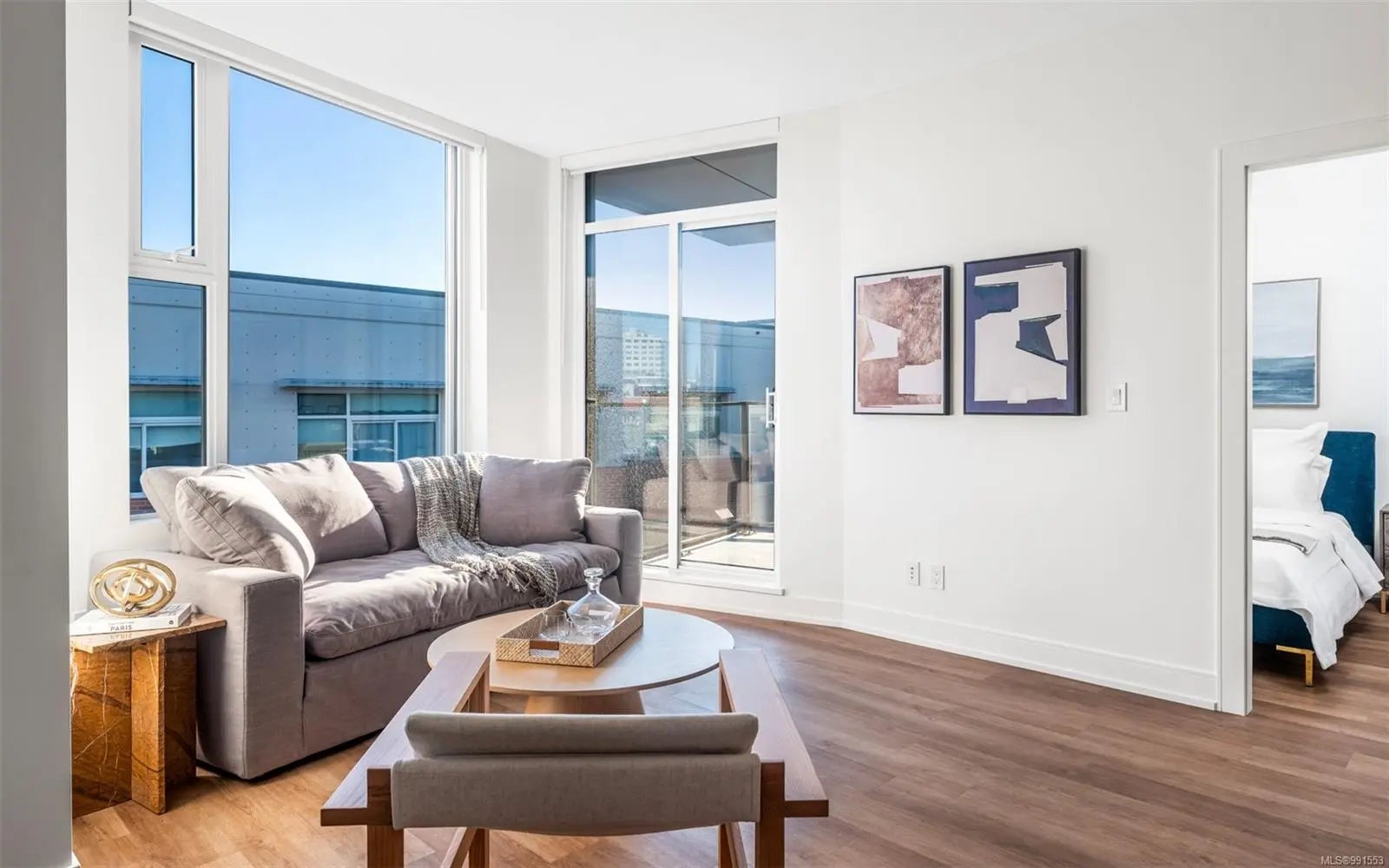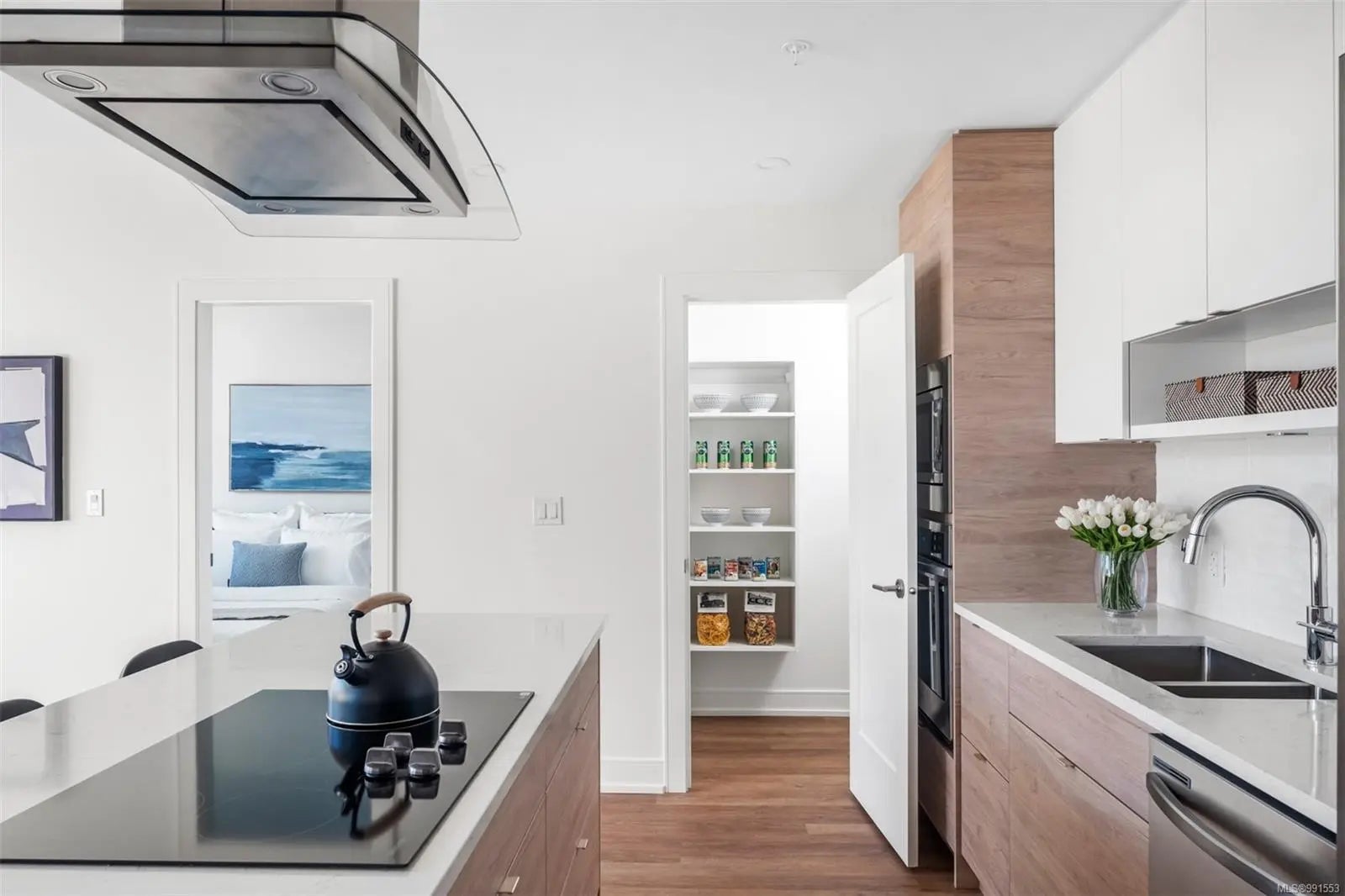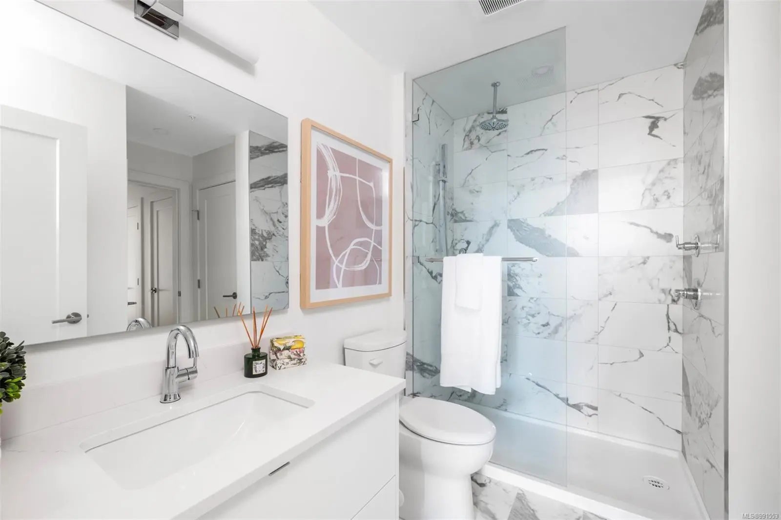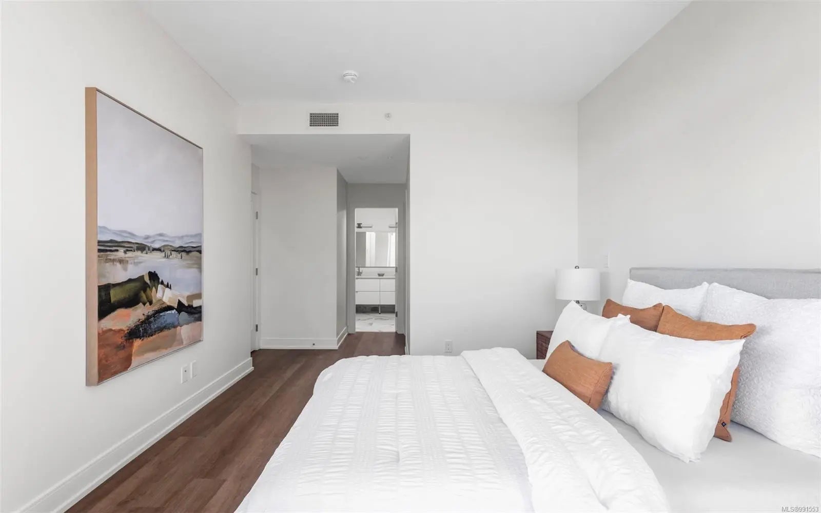 Welcome to the Pearl Residences, a premier boutique-style waterfront steel & concrete building located in the heart of Victoria's vibrant & historic Old Town district. This SW-facing penthouse 2 bed 2 bath unit features 2 balconies with views of the Upper Harbour and Johnson St Bridge. This 1,211 sq ft home offers 9 ft ceilings, a contemporary kitchen with a light colour scheme, high-end S/S appliance package, quartz countertops, pantry, beverage fridge, separate laundry room with sink, extra storage, central air heating and cooling for ultimate comfort, and radiant floor heating in the bathrooms. Intelligent layout with separated bedrooms for added privacy. The primary suite features an ensuite bath with dual sinks, slipper tub, separate shower and large walk-in closet. With side-by-side parking for two, storage, bike storage, a fitness facility, kitchen-equipped amenity room, and pets allowed, this unit offers the ultimate luxury downtown lifestyle. GST IS INCLUDED.