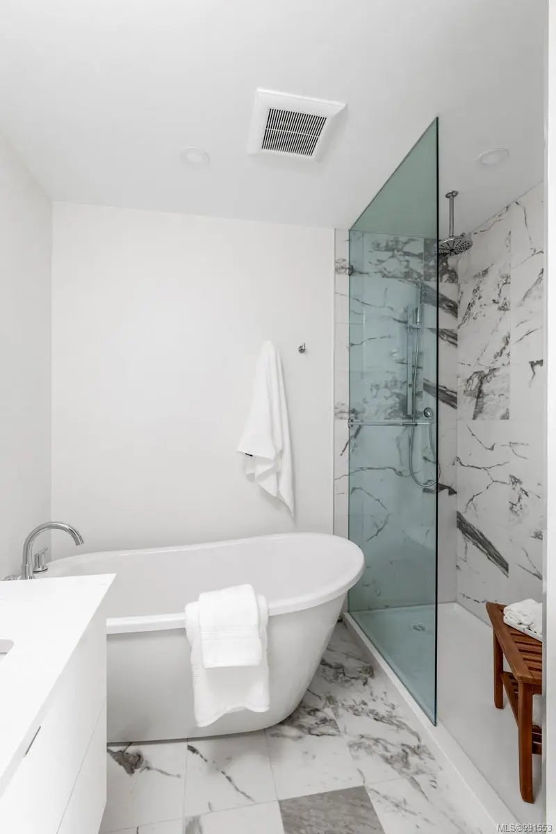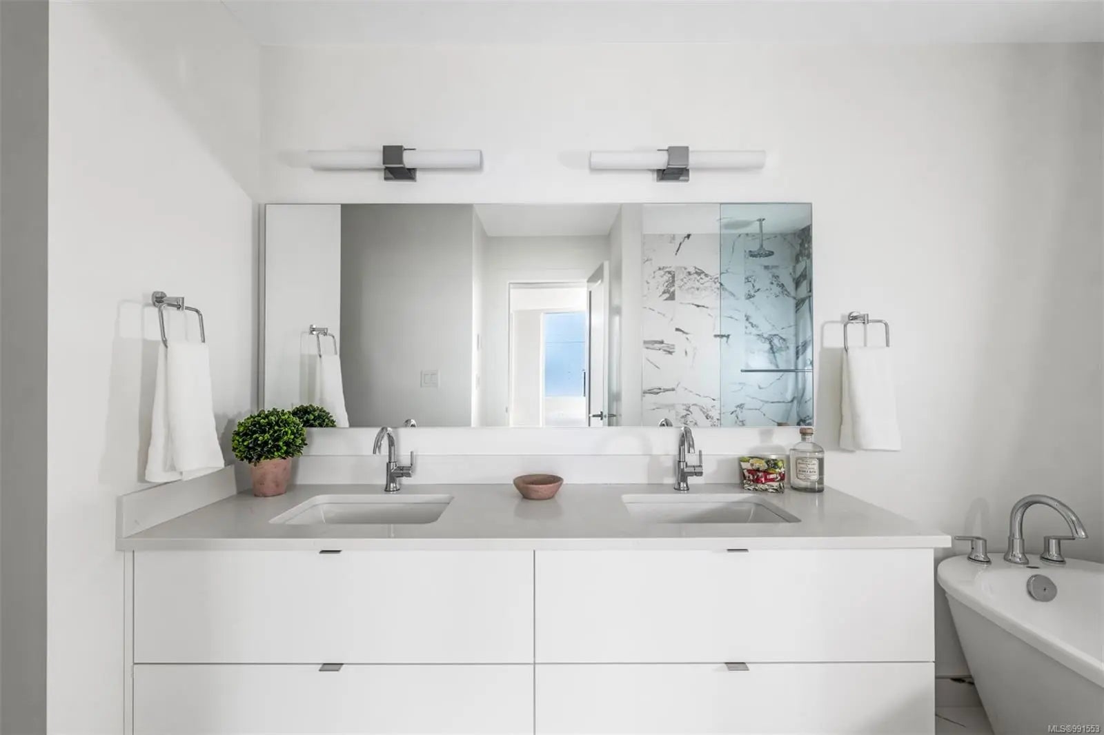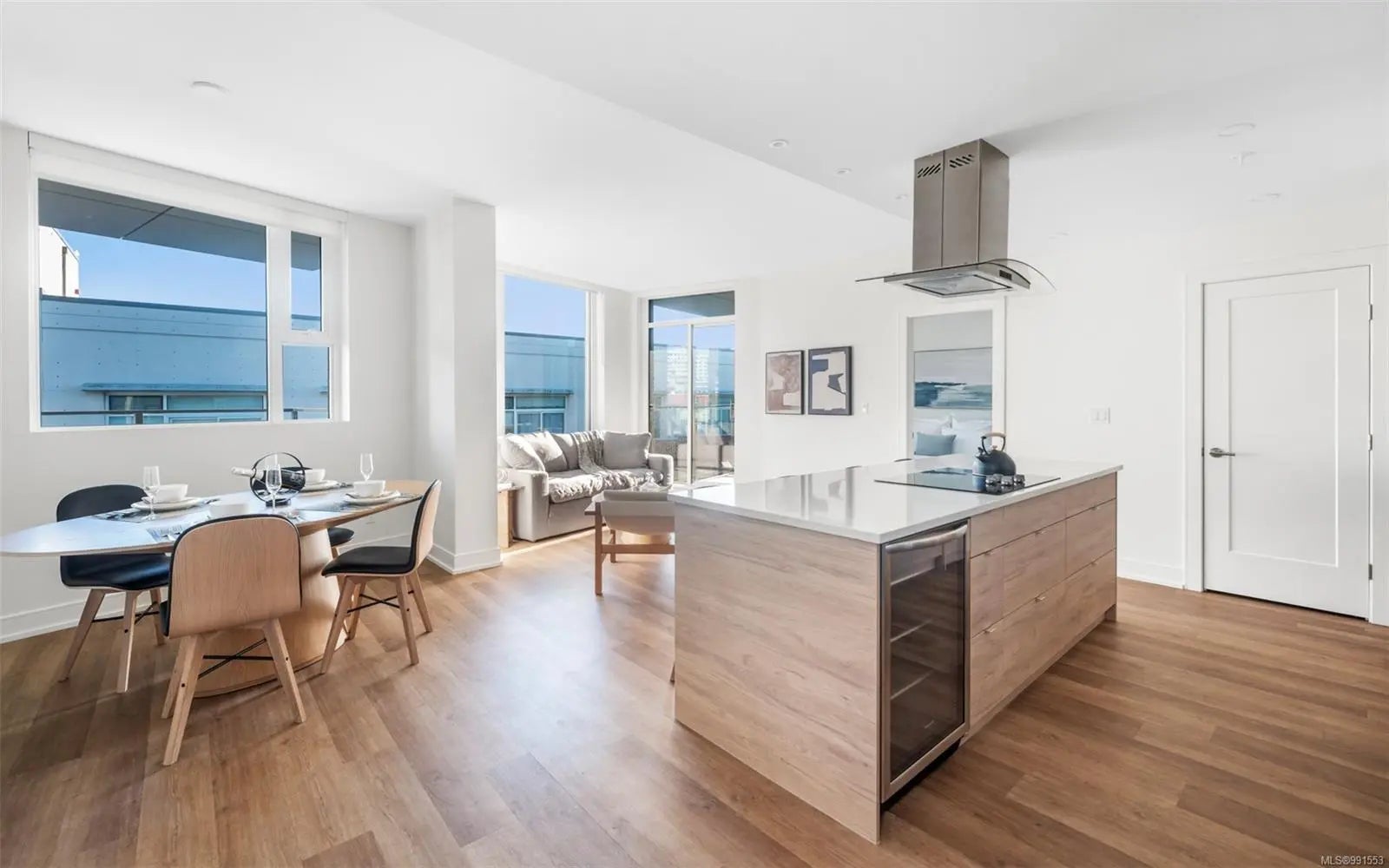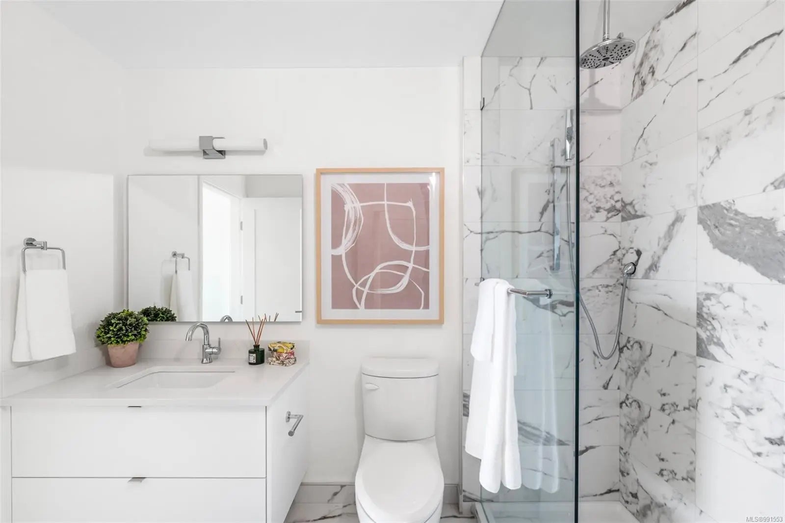Welcome to the Pearl Residences, a premier boutique-style waterfront steel & concrete building located in the heart of Victoria's vibrant & historic Old Town district. This SW-facing penthouse 2 bed 2 bath unit features 2 balconies with views of the Upper Harbour and Johnson St Bridge. This 1,211 sq ft home offers 9 ft ceilings, a contemporary kitchen with a light colour scheme, high-end S/S appliance package, quartz countertops, pantry, beverage fridge, separate laundry room with sink, extra storage, central air heating and cooling for ultimate comfort, and radiant floor heating in the bathrooms. Intelligent layout with separated bedrooms for added privacy. The primary suite features an ensuite bath with dual sinks, slipper tub, separate shower and large walk-in closet. With side-by-side parking for two, storage, bike storage, a fitness facility, kitchen-equipped amenity room, and pets allowed, this unit offers the ultimate luxury downtown lifestyle. GST IS INCLUDED.