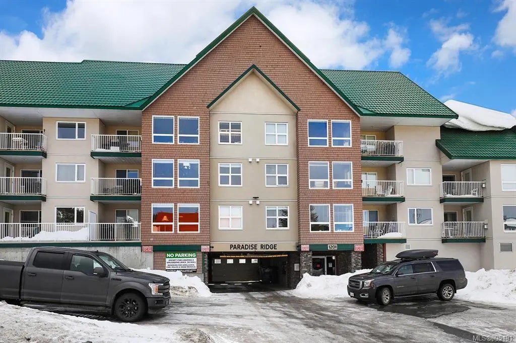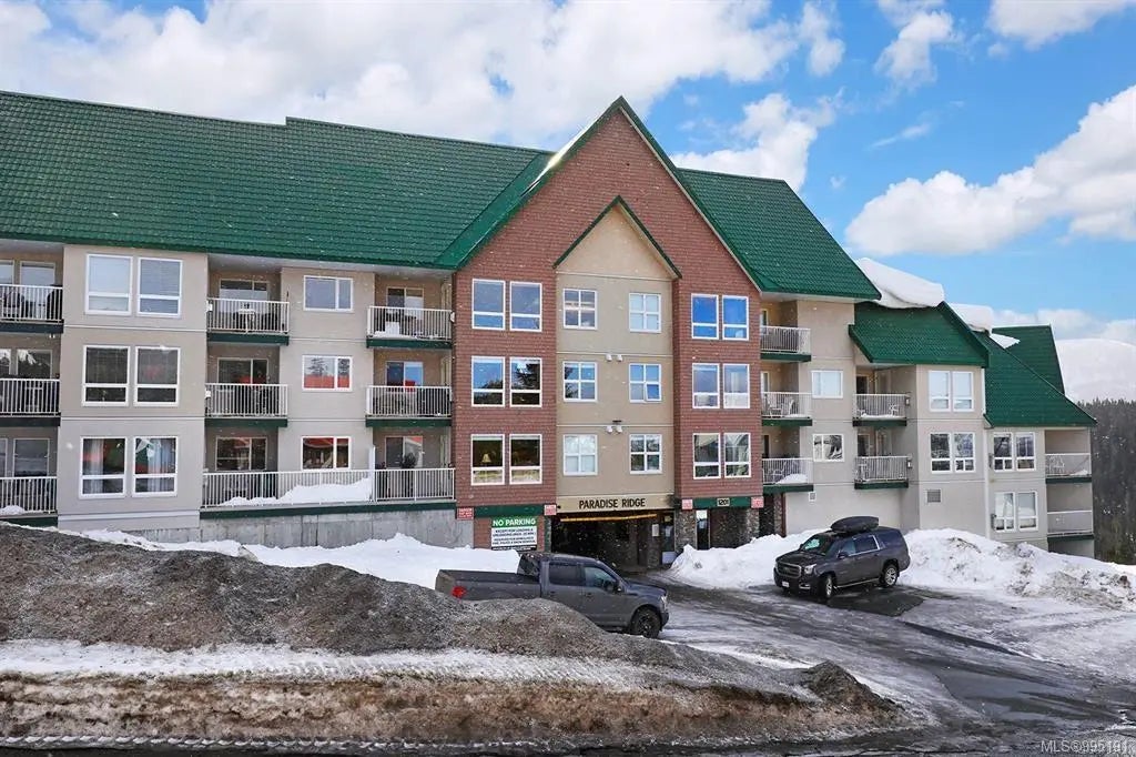 Welcome to your mountain escape! Top floor, fully renovated 3-bedroom, 2-bathroom condo in the sought-after Paradise Ridge complex offers the perfect blend of comfort and adventure. Enjoy sweeping mountain views from your private perch, with access to year-round resort amenities including a heated outdoor pool, hot tub, and sauna.Inside, every detail has been thoughtfully upgraded: brand-new vinyl floors,cozy heated tile flooring,& new efficient baseboard heaters throughout.The modern kitchen shines w new cabinets,granite countertops,& stainless steel appliances.Fresh paint,new lighting,window blinds, curtains, and a stunning new fireplace and surround complete the fresh, contemporary feel. Added conveniences include underground parking, ski and bike storage, and the bonus of no GST! Whether you’re looking for a weekend getaway, full-time residence, or investment property, this move-in-ready condo delivers mountain living at its finest.