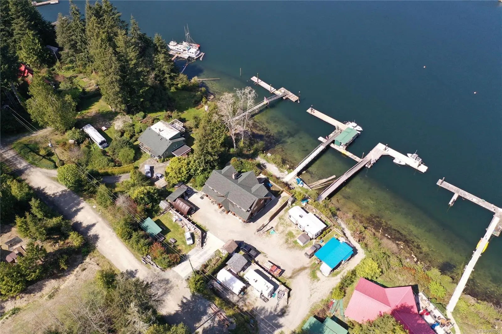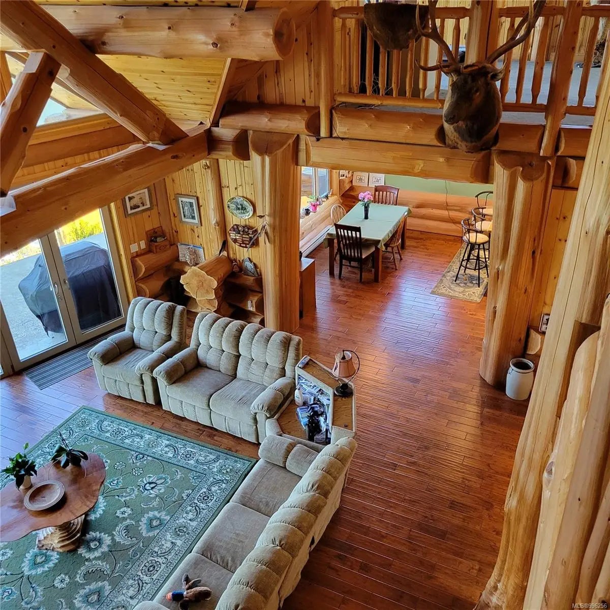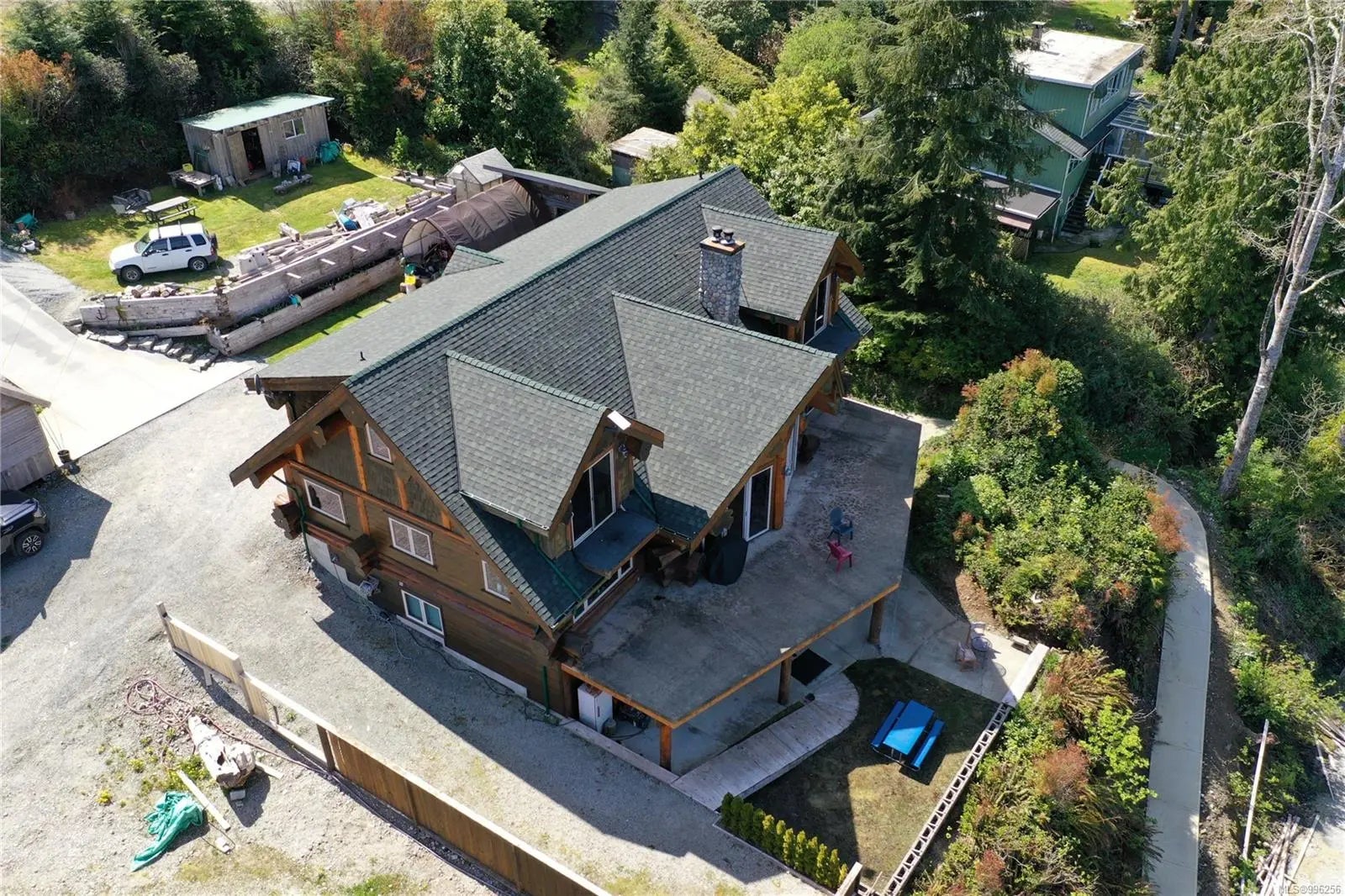 Escape to your own spectacular waterfront retreat nestled in the serene beauty of Bamfield’s Grappler Inlet. This magnificent 4,200 sq/ft log home sits on a 1/3-acre lot, offering protected moorage and instant access to world-class ocean adventures, paired with the peaceful charm of coastal living. Crafted to blend natural elegance with modern comfort, this one-of-a-kind home features an open-concept design with grand vaulted ceilings, soaring full-height windows to maximize views, and a spacious layout offering 5 bedrooms and 6 bathrooms. A large concrete deck off the main level overlooks the inlet, perfect for entertaining or simply soaking in the tranquil surroundings. The upper level boasts an expansive games room and a luxurious master suite. The lower-level houses a fully self-contained 3-bedroom, 3-bathroom suite with a walk-out patio, currently being utilized as guest accommodation for a thriving Fishing Charter business. A pathway leads down to the 85-foot dock.